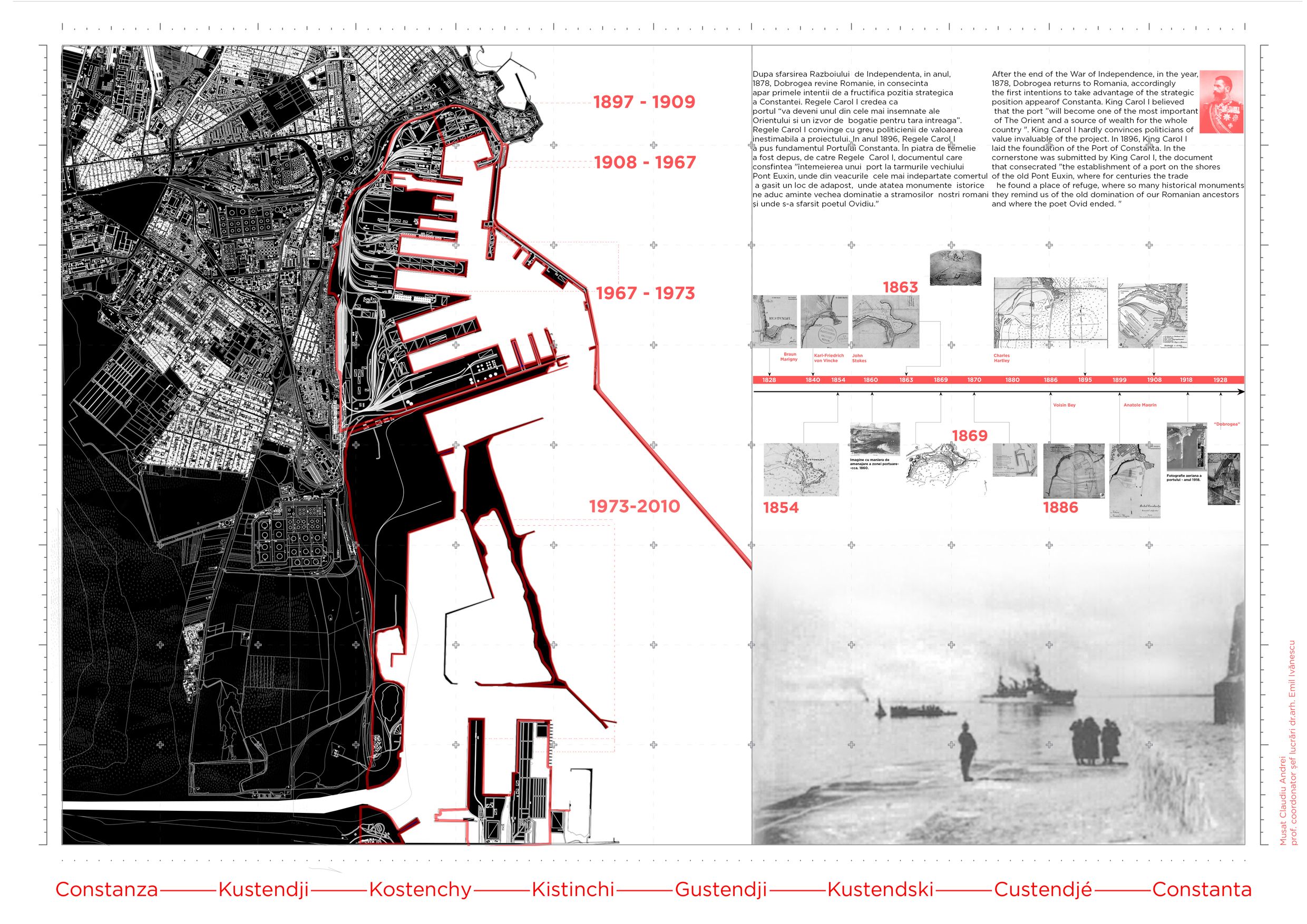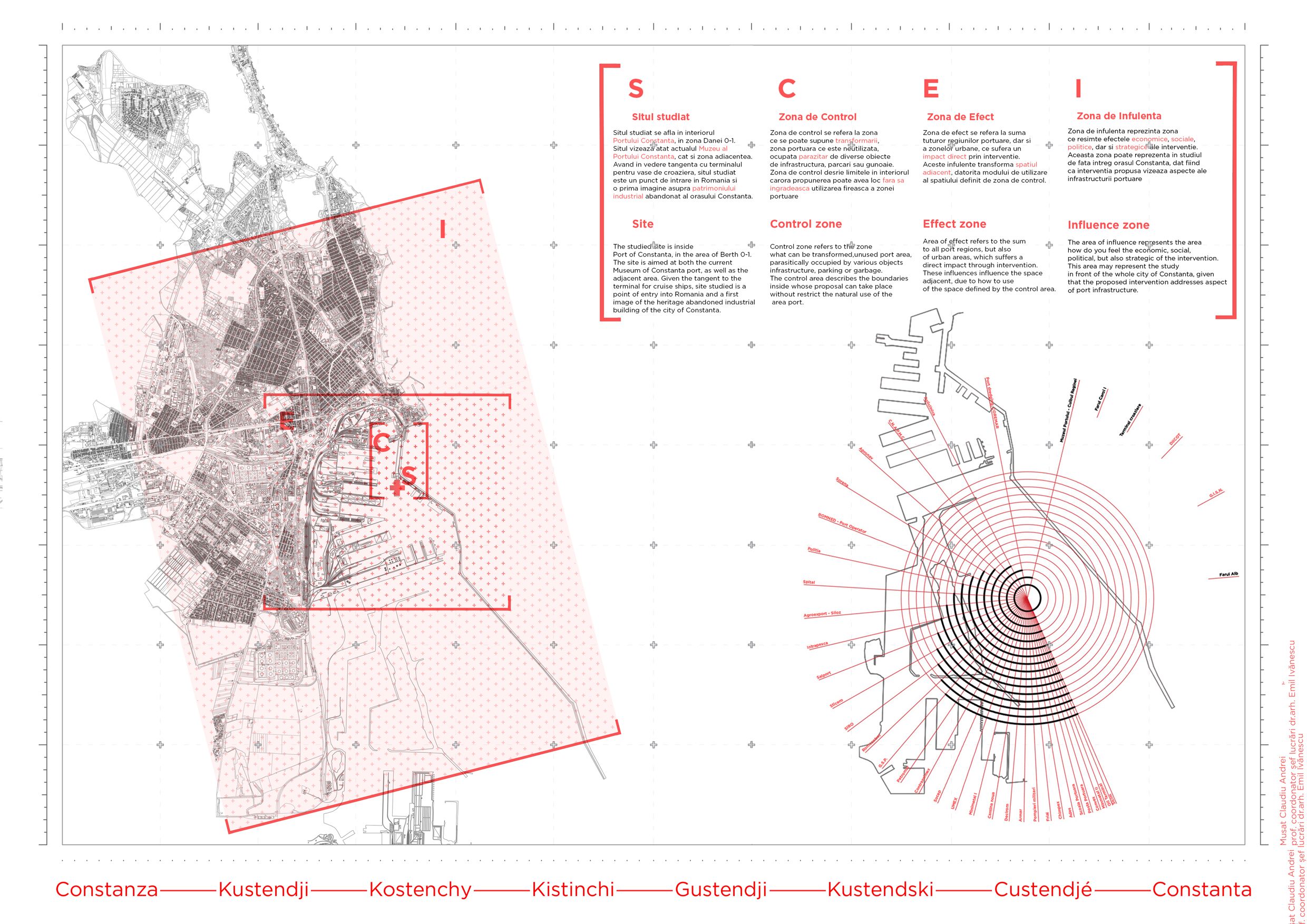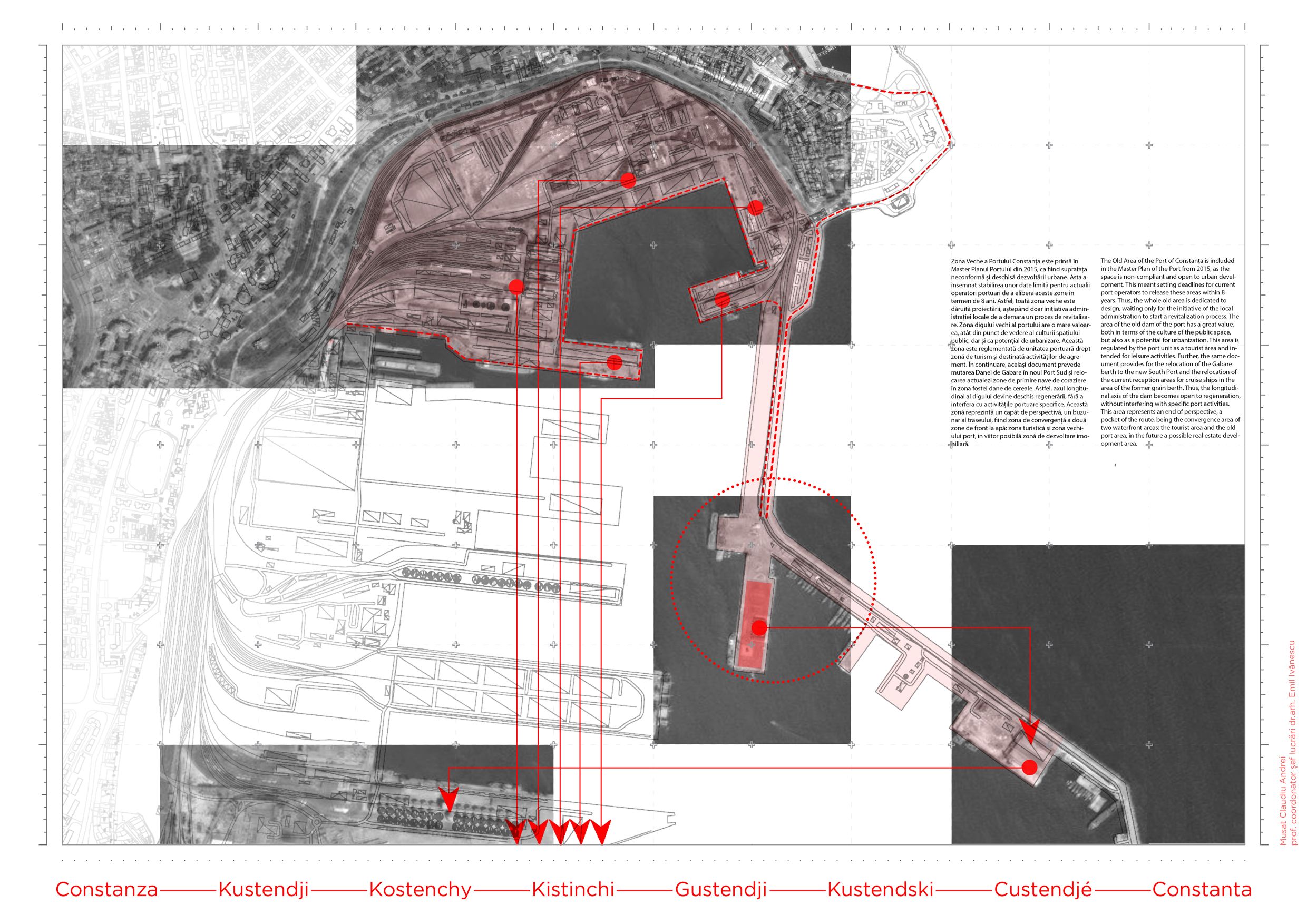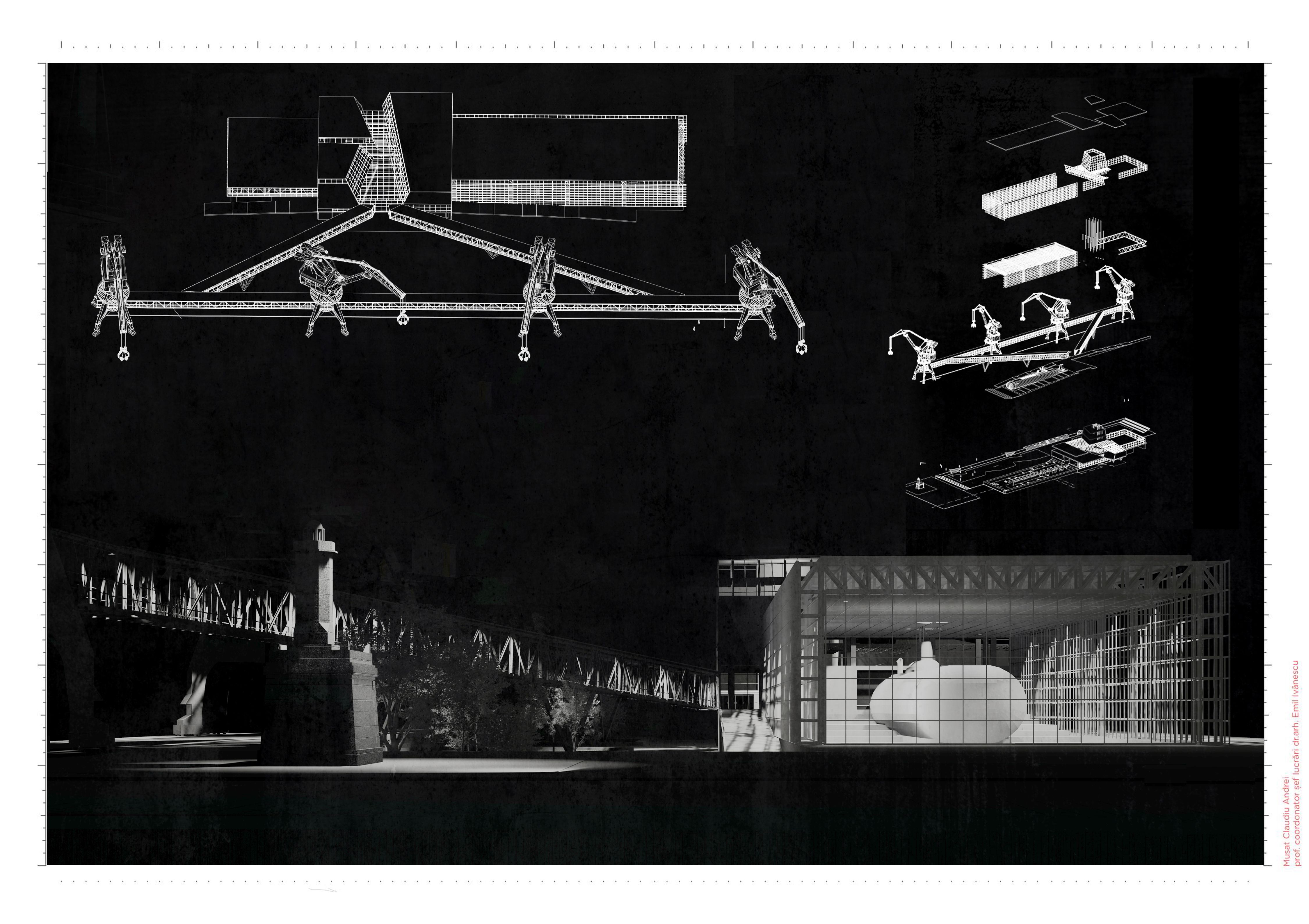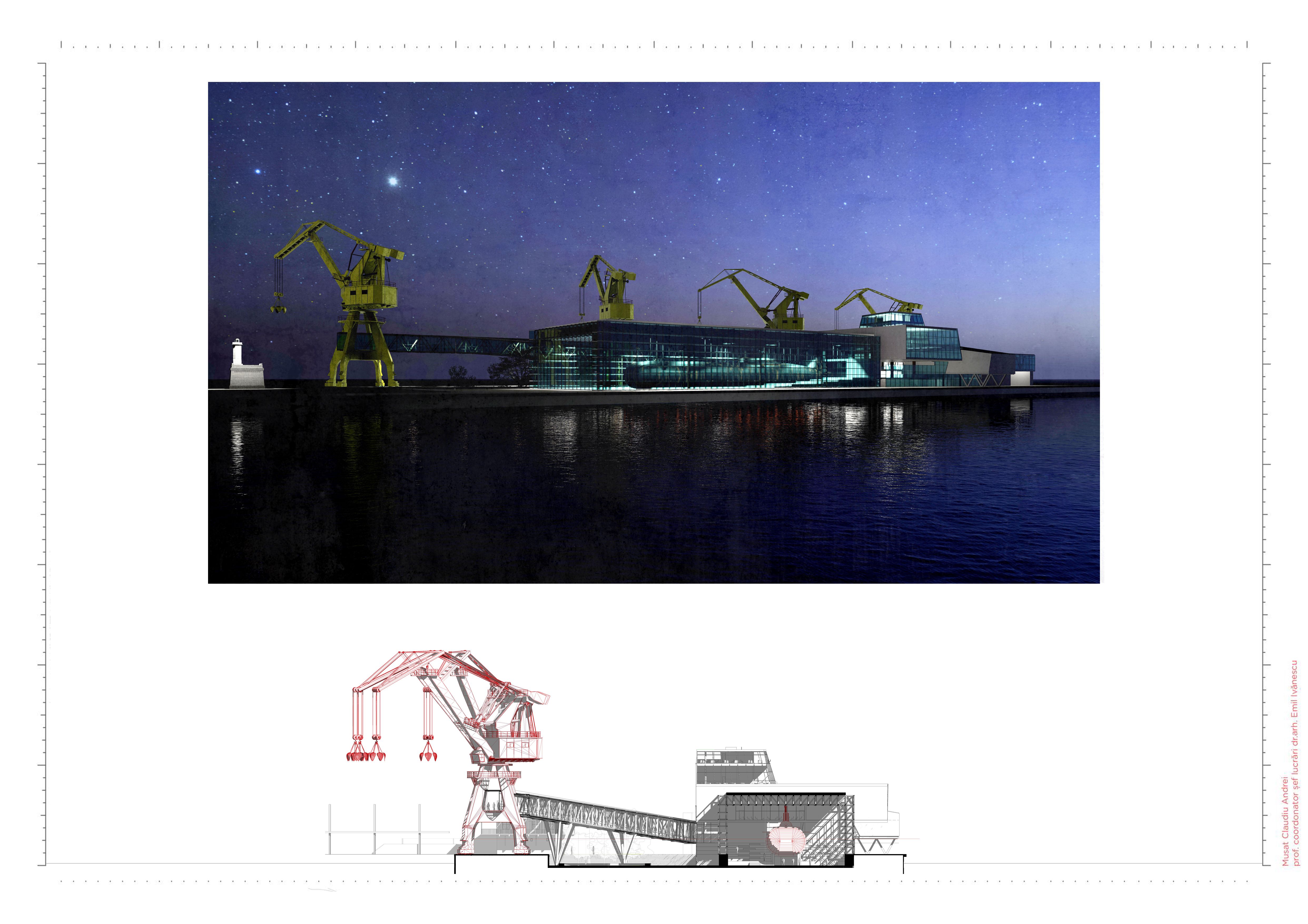 Procesul de globalizare uniformizează structura portuară atât în materie de organizare, cât și a activităților economice derulate în port. Odată cu efectul acestui proces, vechile funcțiuni industriale sunt declarate neconforme cu noile tehnologii, iar eliminarea acestora din circuitul economic le transformă în epave ale peisajului industrial. Astfel, proiectul situat în zona veche a Portului Constanța, pornește de la dorința de a crea o direcție de dezvoltare în raport cu nevoile urbane, ale acestui proces de regenerare pe fostele zone portuare. Funcțiunea de muzeu păstrează caracterul industrial al portului și subliniază caracterul public pe care digul îl avea odinioară. Contextul industrial implică dinamism, mișcare și activitate, astfel, soluția încearcă sa genereze această atmosferă atât prin traseu cat și prin relaționarea spațiului public cu propunerea. Soluția incorporează macaralele rămase în urma operatorilor portuari, transformându-le în spații expoziționale.