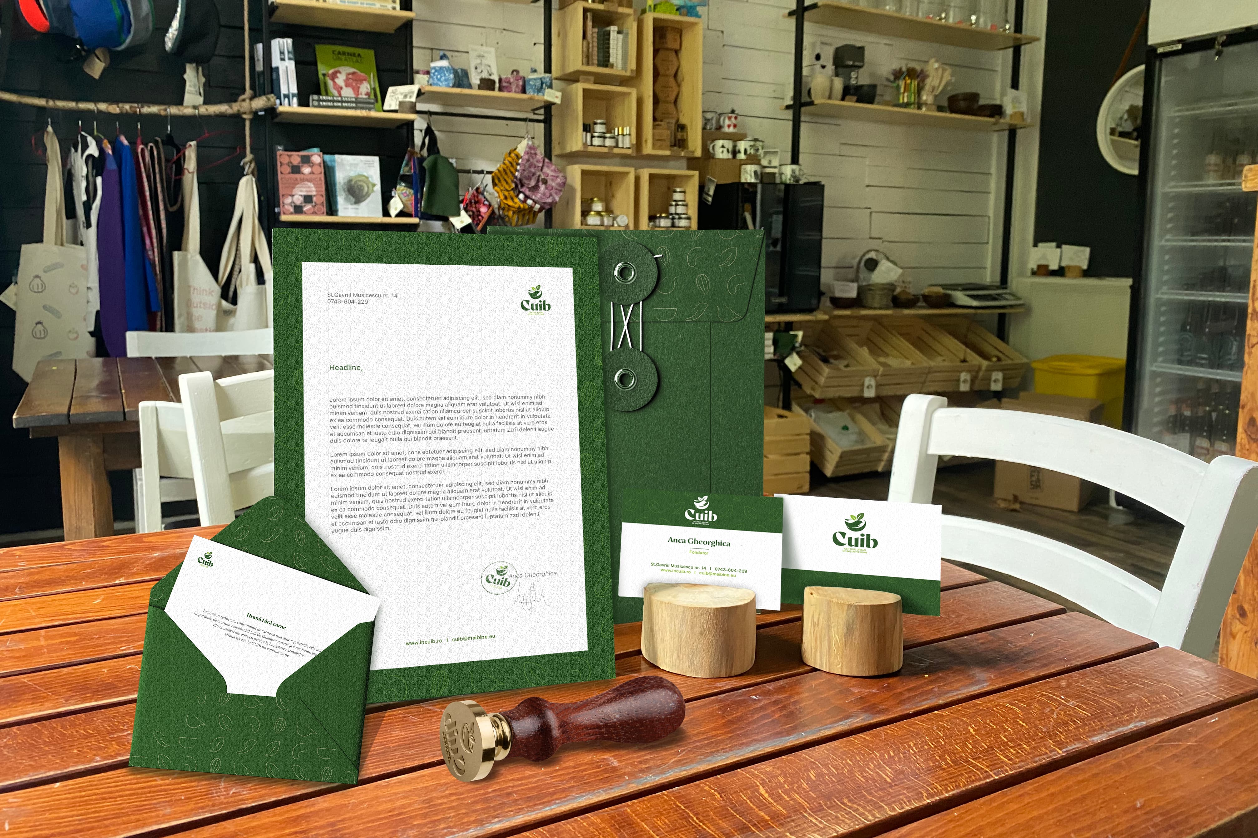 Lucrarea are ca obiectiv îmbunătățirea identității vizuale, ce va ajuta la întărirea conceptului și a promovării localului CUIB. Componentele vizuale ale logo-ului propus îmbină natura prin reprezentarea frunzei cu elemente din domeniul gastronomic, bolul, dar și elemente simbolice precum mâna și pasărea. Frunza și pasărea sunt menite să ofere conceptul unui bol ce deţine o hrană sănătoasă prin reprezentarea frunzelor așezate la deschiderea bolului, având la bază simbolul mâinii, ce înlocuiește nervura frunzei, ce sugerează îmbrăţișarea naturii. În cele din urmă, identitatea este propusă pentru un bistro vegan, astfel identitatea unește cinci simboluri specifice conceptului promovat de bistro, dar și simboluri specifice echilibrului și naturii. Ca tehinică de lucru s-a folosit pata de culoare, cu zone de negative space și forme circulare.